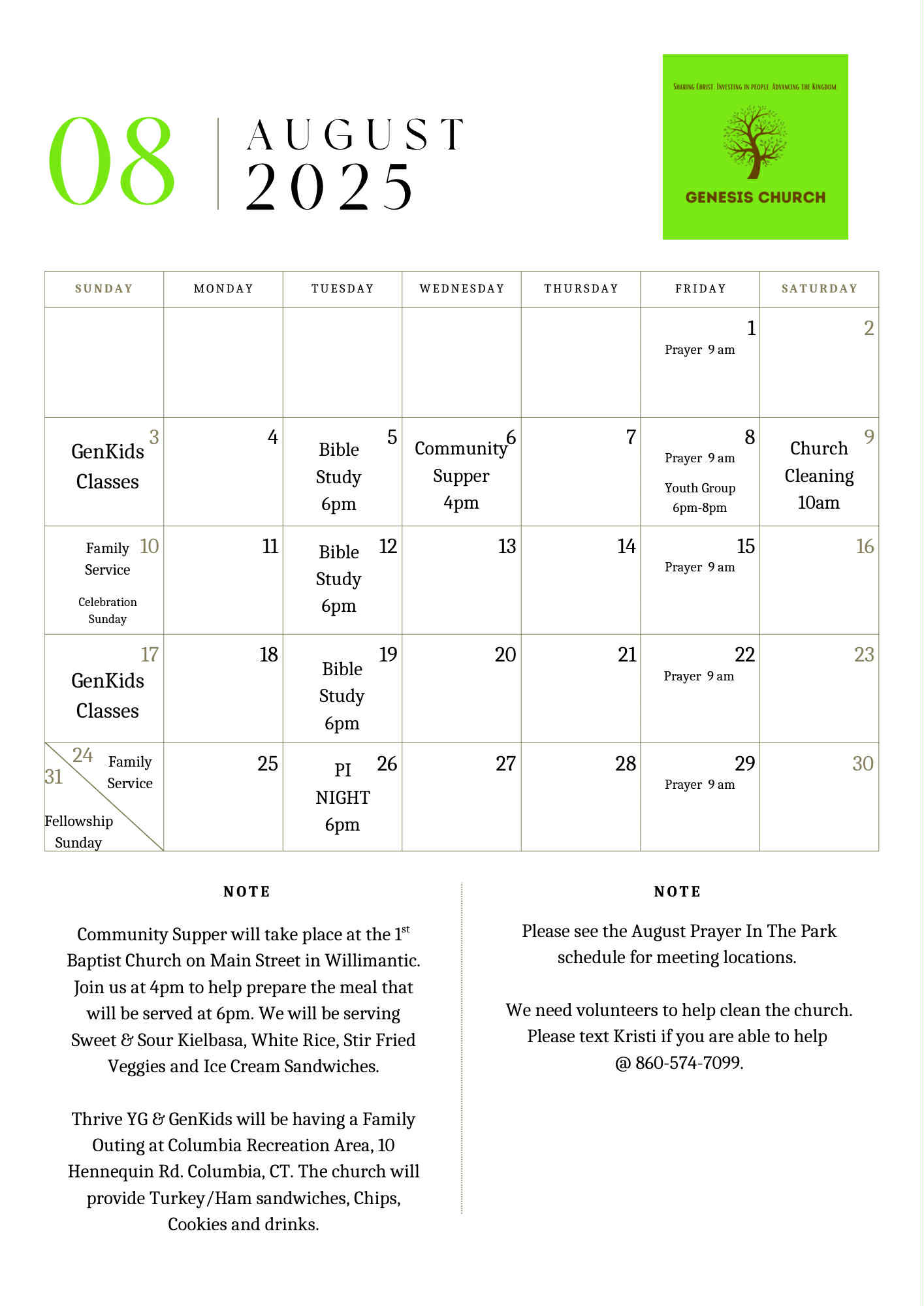 Genesis Church is here for you to help guide during your walk with Jesus! Each week we get together and grow our relationship with Jesus stronger through our Sermons, Studies, and community events!